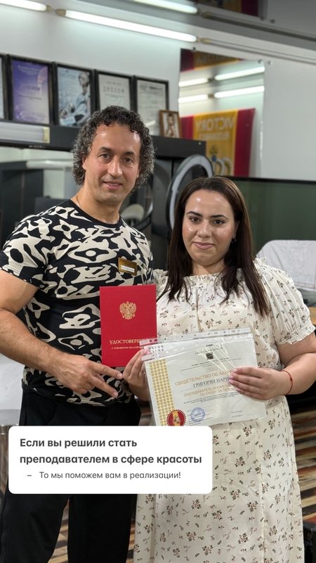 - Многократный номинант премии Russian Hairdressing 2016, 2017 (категория «Мужской коммерческий образ») Важно понимать, что для того, чтобы открыть свои курсы и начать преподавать, необходимо иметь педагогическое и профессиональное образование, а не сертификат. Это базовое требование статья 46 ФЗ РФ (Право на занятие педагогической деятельностью). Конечно, опыт работы и развитие своих навыков - это тоже важно, но, к сожалению, для права обучения одних знаний и умений недостаточно! Должен быть специальный документ, полученный в аккредитованном или лицензированном учебном учреждении. Документ БЬЮТИ-ТРЕНЕРА имеют все преподаватели АКАДЕМИИ,что соответствует требованиям государства, с ним они могут преподавать не боясь штрафов и проверок. Все документы выданные в нашей Академии вносятся в Федеральный регистр (ФИС ФРДО).